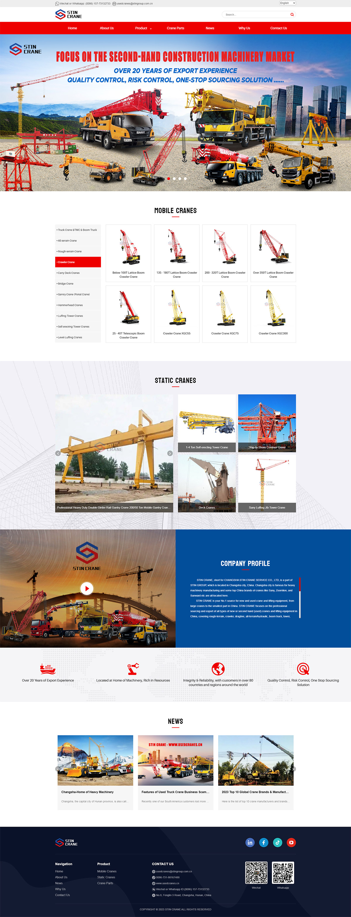 STIN CRANE, short for CHANGSHA STIN CRANE SERVICE CO., LTD, is a part of STIN GROUP, which is located in Changsha city, China. Changsha city is famous for heavy machinery manufacturing and some top China brands of cranes like Sany, Zoomlion, and Sunward etc are all located here.